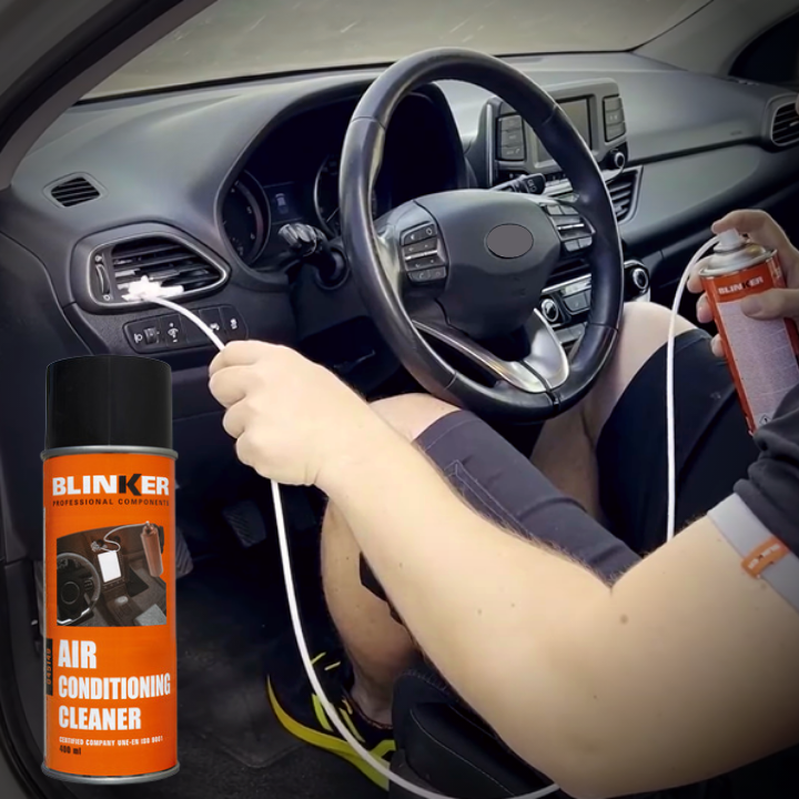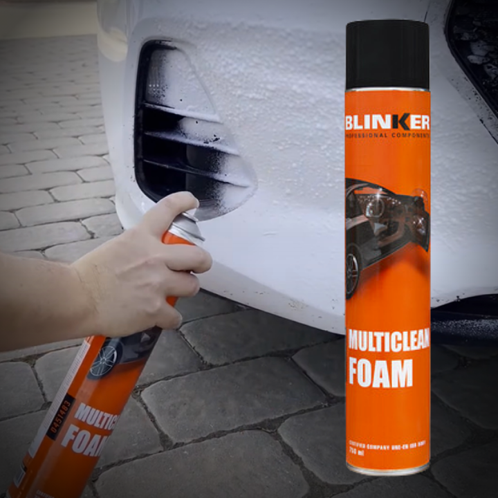 En primer lugar, deberemos limpiar el habitáculo. La espuma limpiadora multisuperfies de Blinker se puede aplicar sobre asientos, revestimientos interiores de puertas y techos, elementos de tela, superficies de plástico y cuero, como volantes, salpicaderos, reposabrazos, reposacabezas, gomas de puerta, etc.